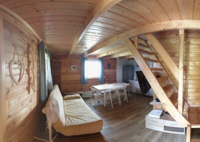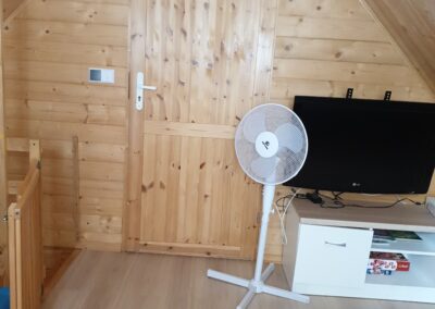 - na piętrze : salon z rozkładaną kanapą, stolik szafka i tv, oraz sypialnia z dwoma łóżkami dwuosobowymi i komody.