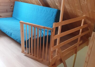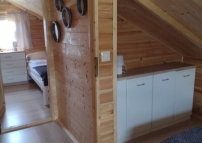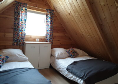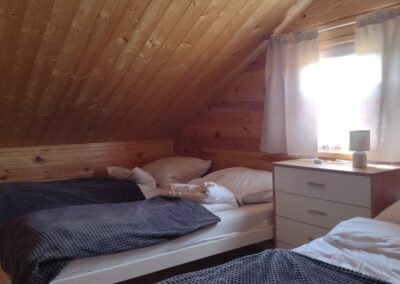 - na piętrze : pierwsza sypialnia łóżka 1x2os 2x1os, druga sypialnia łóżka 2x2os